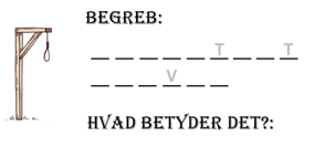 Øvelsen fungerer som en galgeleg, hvor deltagerne skal gætte de manglende bogstaver.