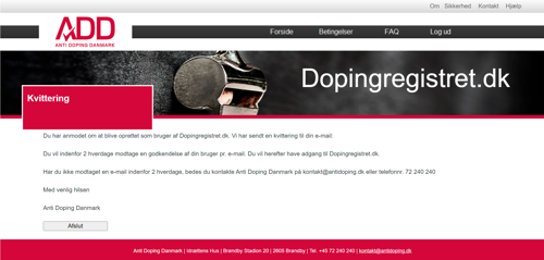 Herefter modtager Anti Doping Danmark din anmodning. Du modtager en e-mail med bekræftelse og kommer til en underside med kvittering for din anmodning.