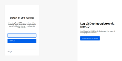 Når du er logget ind, bliver du bedt om at skrive dit CPR-nummer. Indtastningen bekræfter CPR-nummeret fra login.