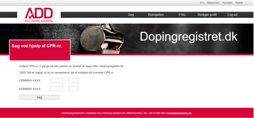 Alle opslag i Dopingregistret.dk bliver registreret med henblik på at undgå misbrug.