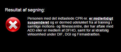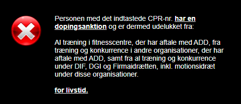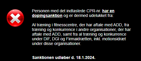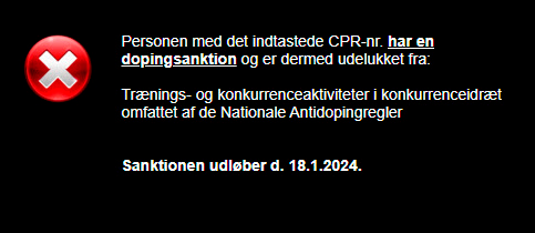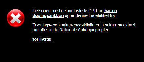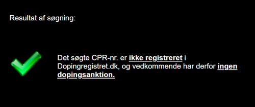 Herefter får du for det pågældende personnummer information om, hvorvidt vedkommende har en igangværende udelukkelse som følge af en dopingsanktion.