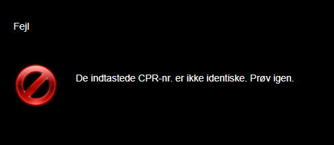 Får du følgende besked, er det fordi du ikke har tastet to enslydende personnumre i felterne